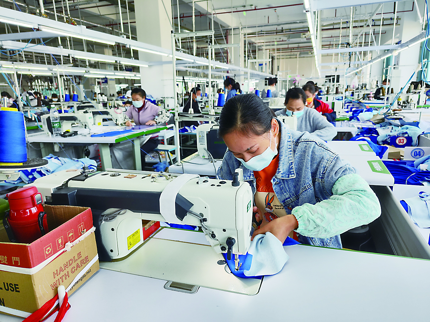 ◀11月17日,湖南欧微时尚集团的工人在工作。 记者/杨凌凌 摄