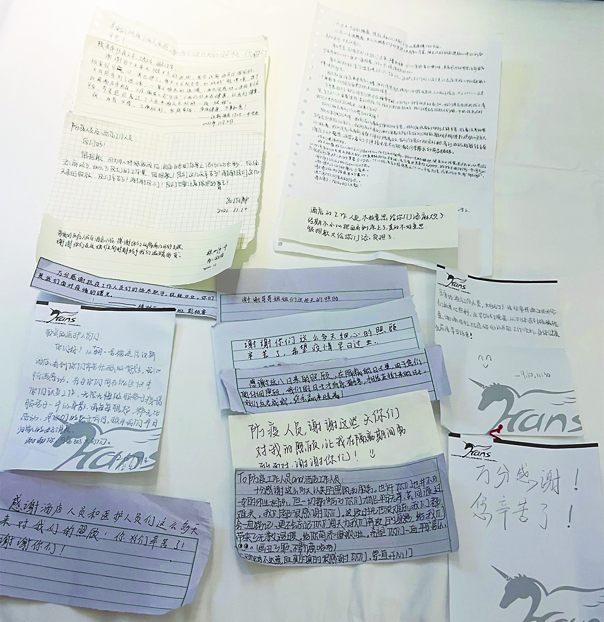 ▲学生们写给退役军人志愿者的感谢信。 受访者供图