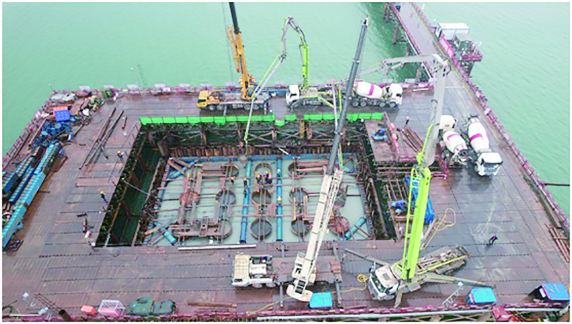 11月18日下午,在醴娄四标株洲湘江特大桥施工现场,随着最后一车混凝土浇筑到位,历经24小时的湘江特大桥12#主墩承台封底顺利浇筑完成。12#主墩承台位于株洲航电枢纽上游3.8公里处,围堰处最大水深达22米,施工安全风险极大、围堰设计难度高。承台封底混凝土的顺利浇筑,标志着项目转入深水承台施工阶段。