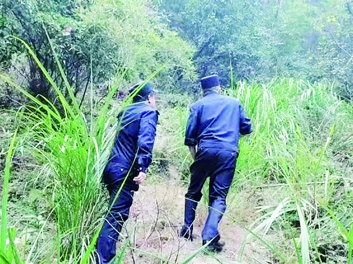 ▲攸县民警在山林中搜寻走失的山羊。 通讯员供图