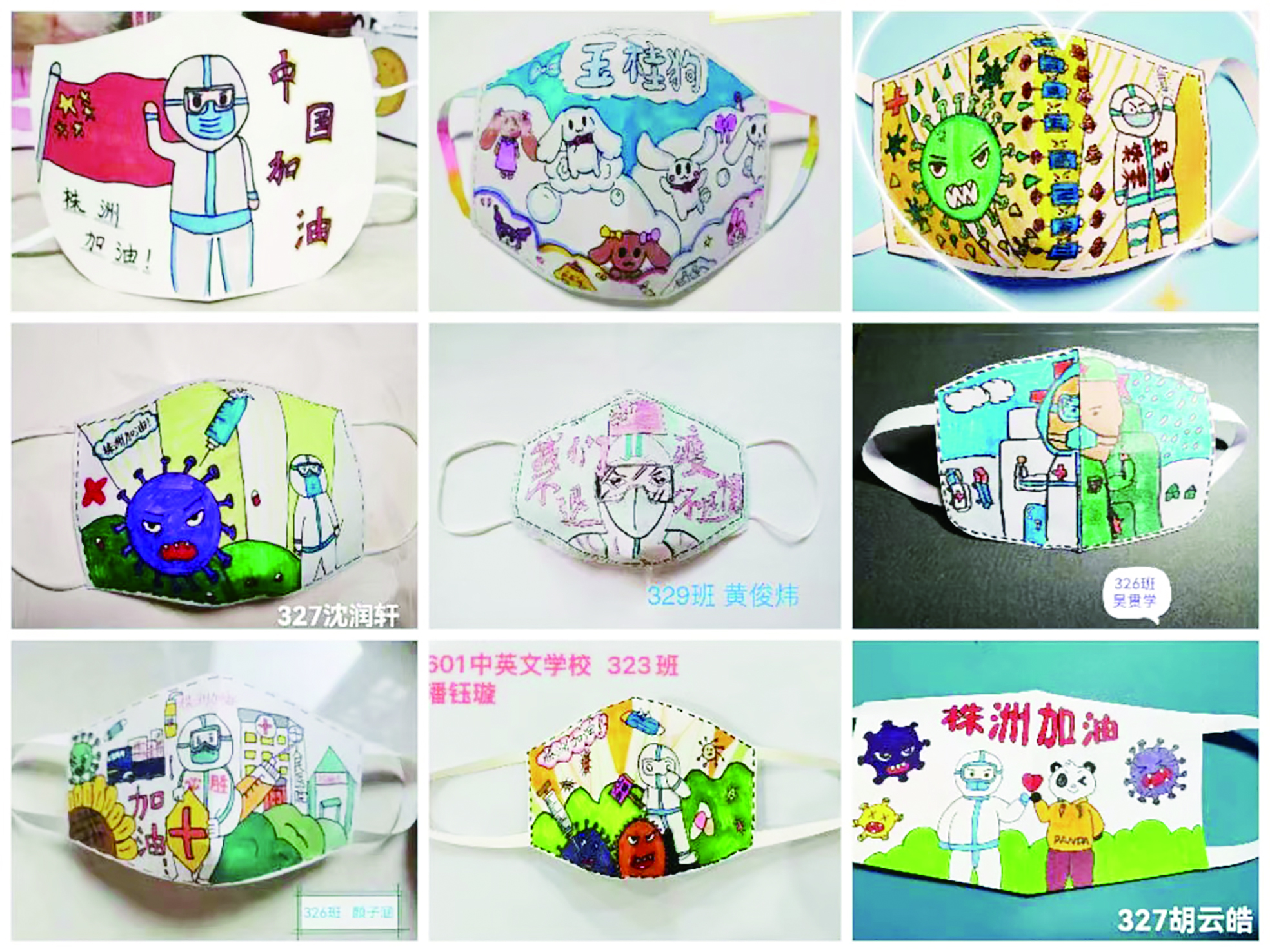 昨日,宅家的六0一中英文小学孩子们开动脑筋,用童心与画笔绘出了一个个温暖的防护“罩”。一个个看似简单的口罩作品,抒发了孩子们共同的心声:“抗击疫情,从我做起。”