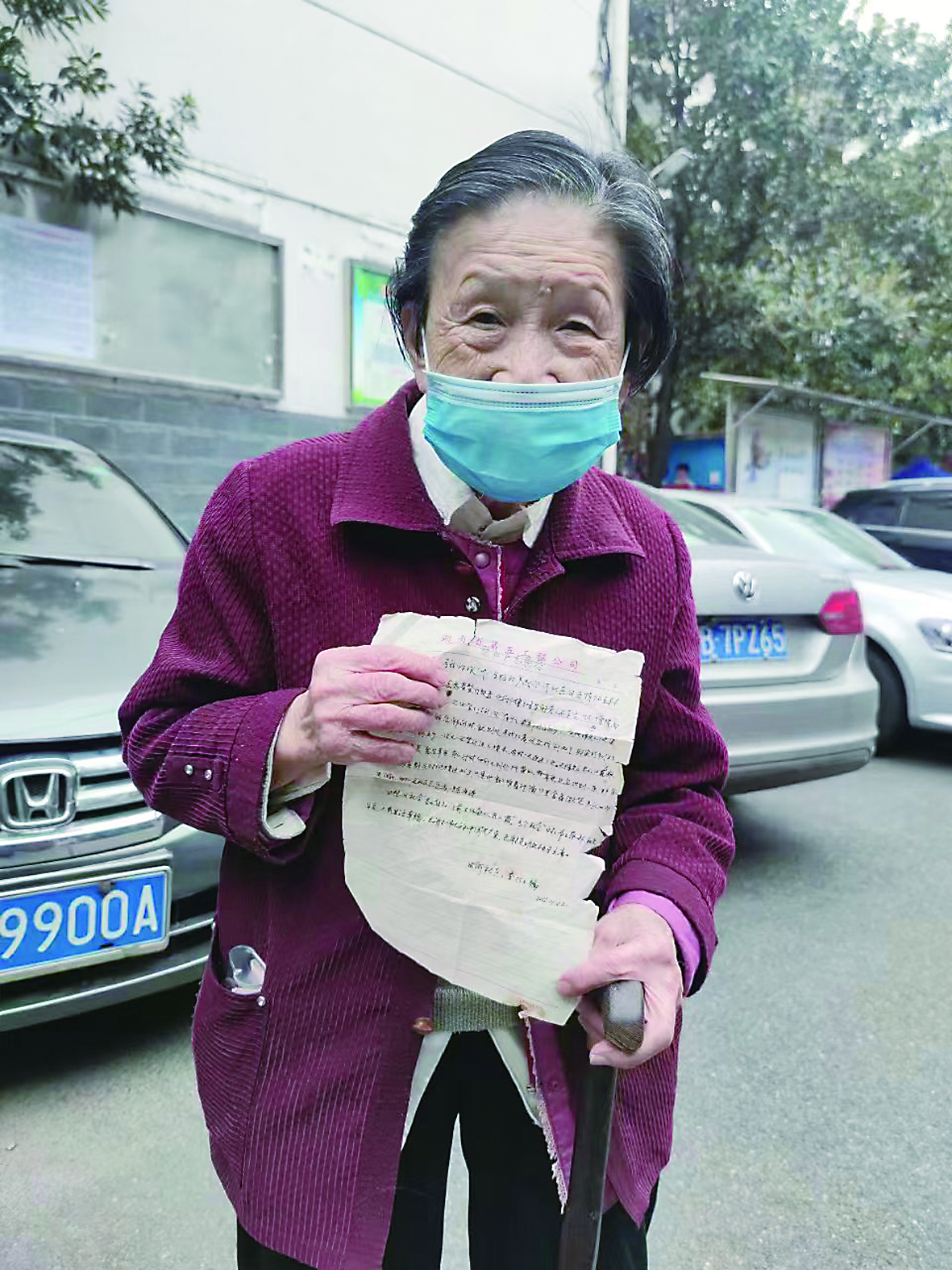 ▲11月22日,李中云老人送来亲笔感谢信。 记者/杨凌凌 摄