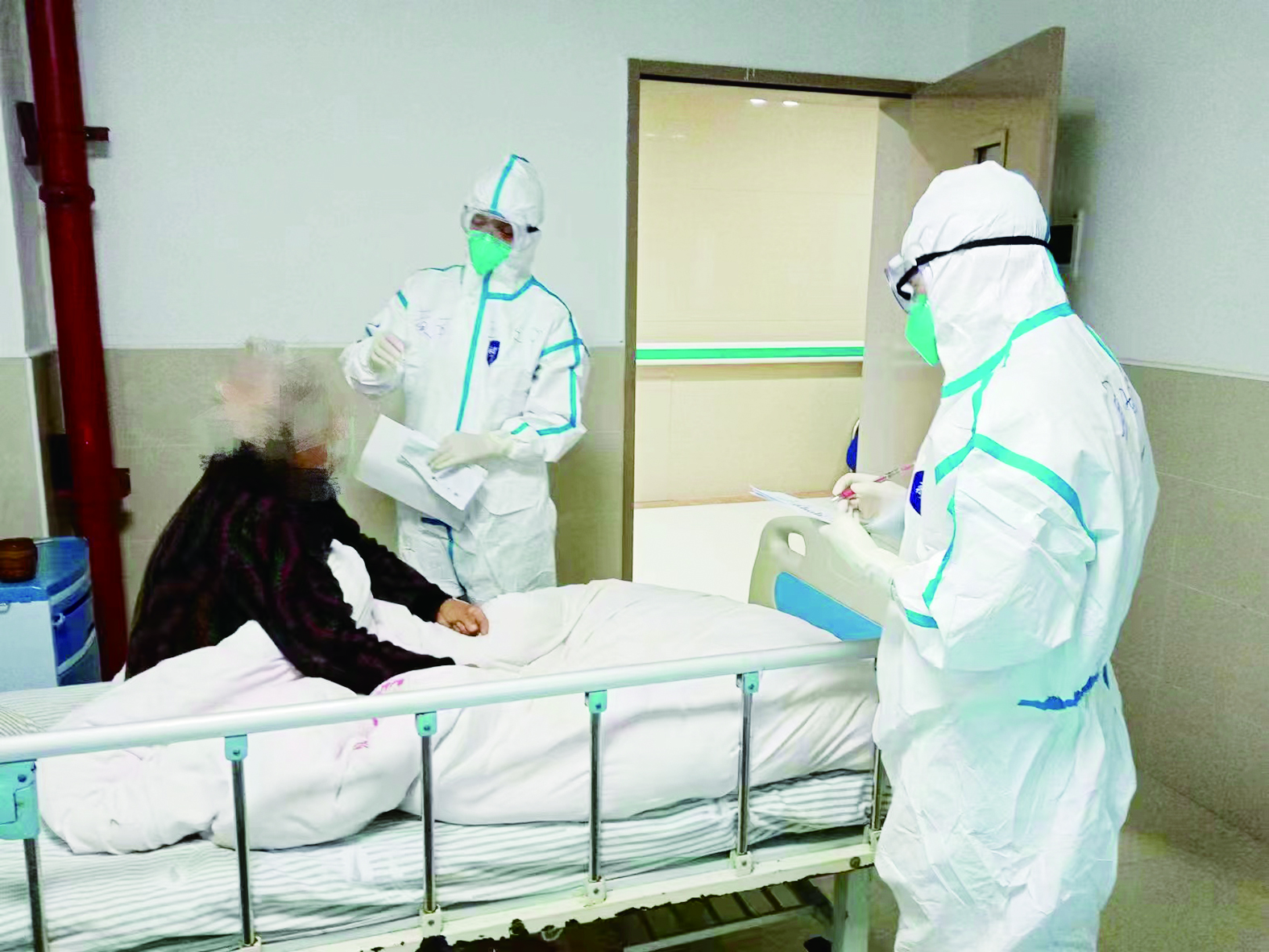 ▲在隔离病区,医护人员正在为患者精准施治。通讯员供图