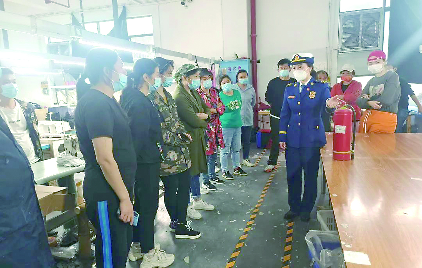 ▲消防监督员深入企业开展消防安全培训。记者/马文章 摄