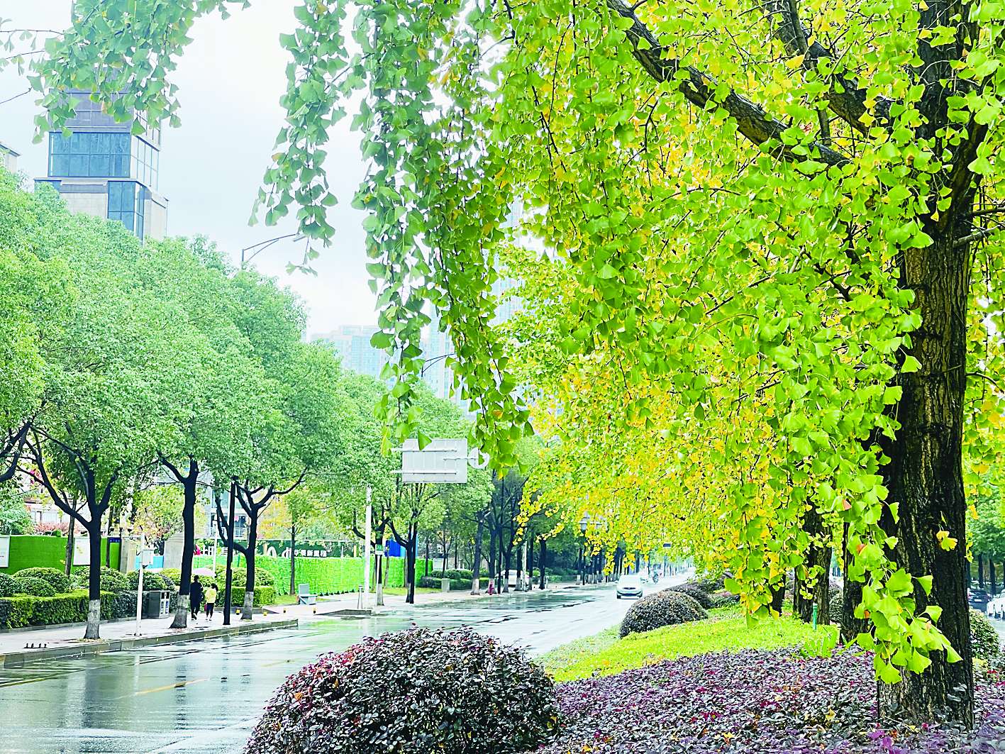 除了庐山路,荷塘区钻石路、芦淞区铁东路以及湘江风光带钢琴广场等区域,都有集中栽种的银杏树景观带。