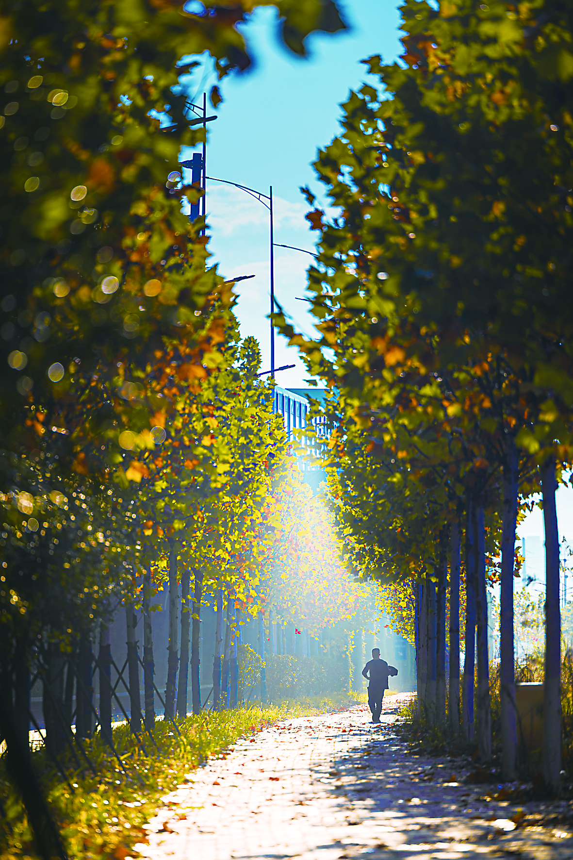 ◀株洲冬日添亮色,梧桐树下醉行人。记者/吴琦 摄