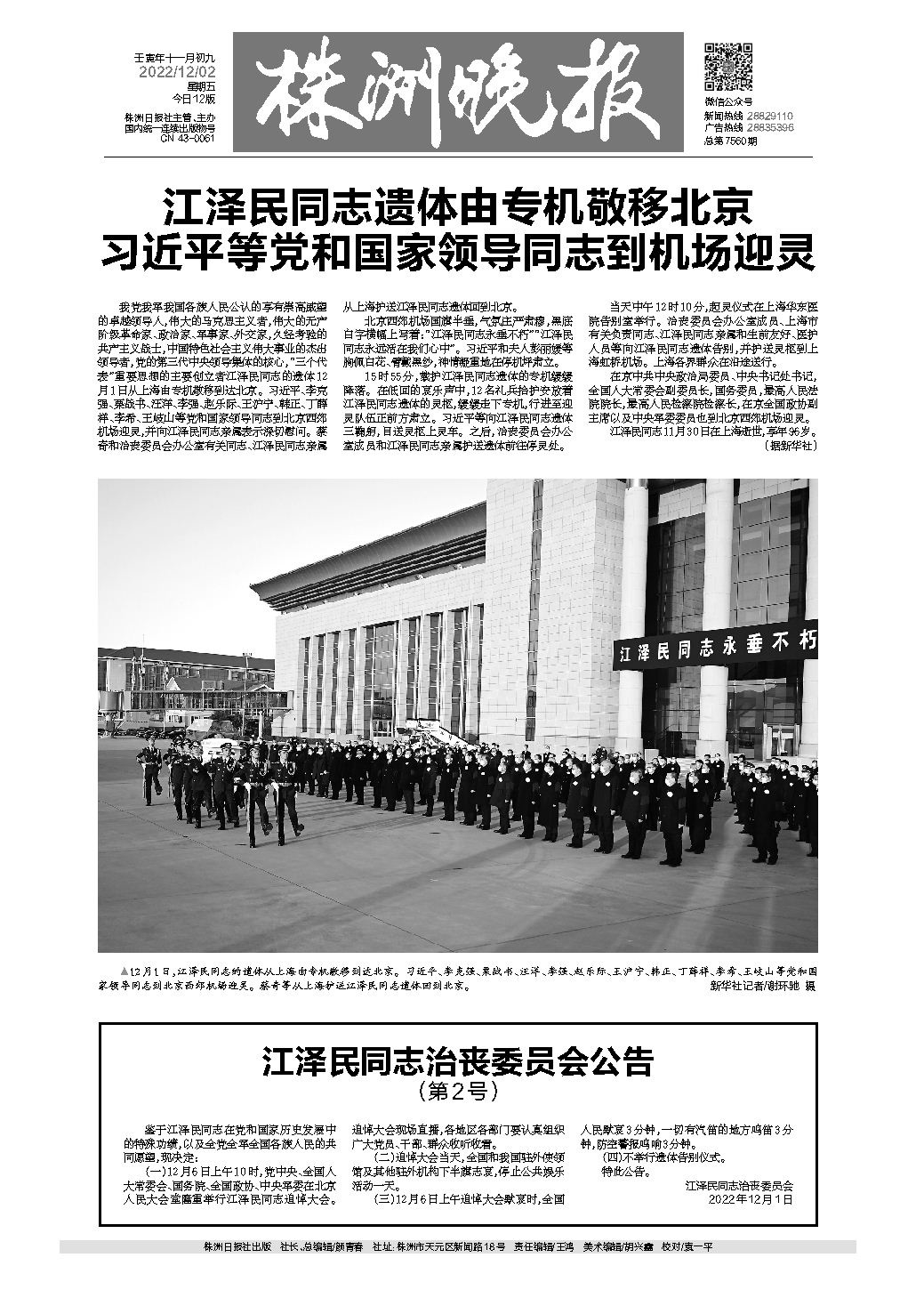 江泽民同志遗体由专机敬移北京 习近平等党和国家领导同志到机场迎灵