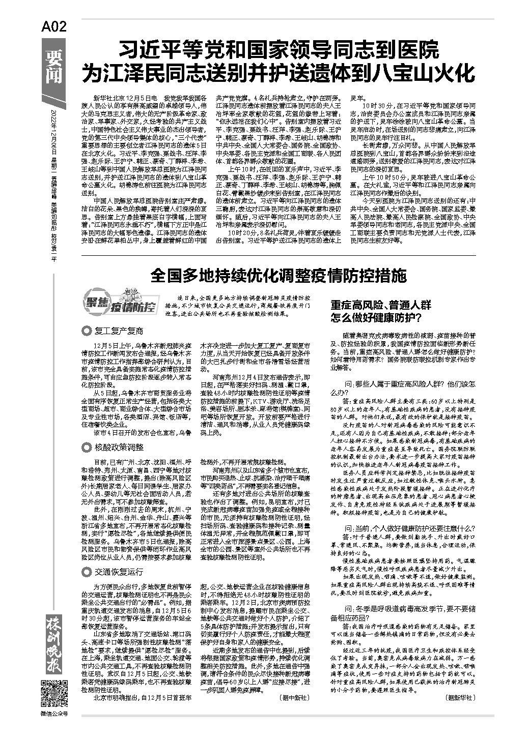 习近平等党和国家领导同志到医院为江泽民同志送别并护送遗体到八宝山火化