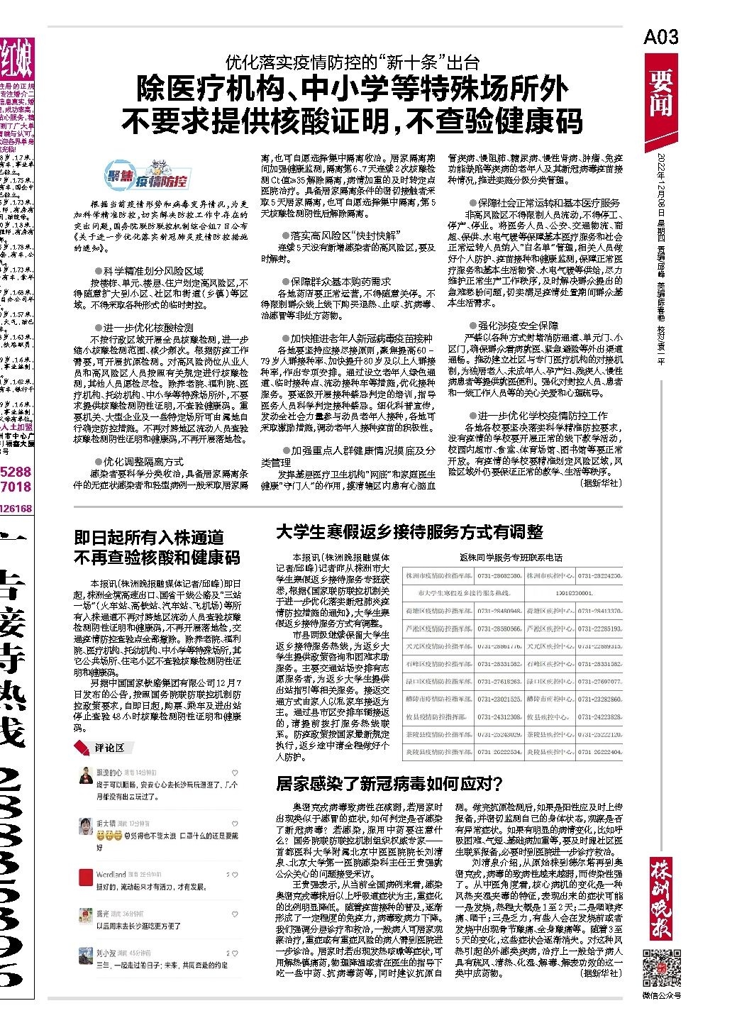 除医疗机构、中小学等特殊场所外 不要求提供核酸证明,不查验健康码