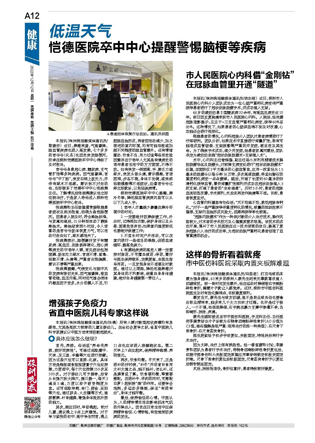 低温天气恺德医院卒中中心提醒警惕脑梗等疾病