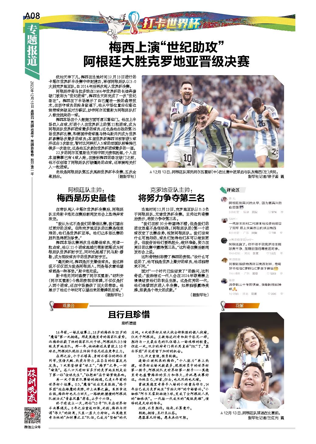 梅西上演“世纪助攻”阿根廷大胜克罗地亚晋级决赛