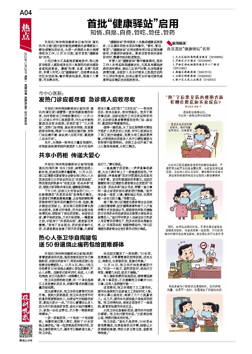 热心人张卫华自掏腰包送50份退烧止痛药包给困难群体