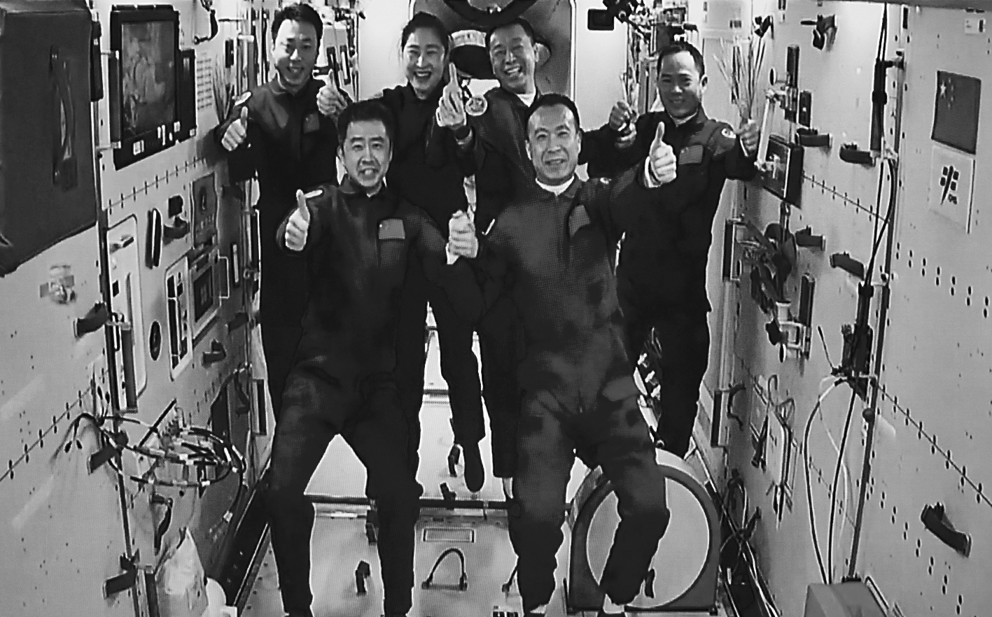 这是中国载人航天史上首次有两个航天员乘组在“太空会师”,也是中国航天员首次在空间站迎接神舟载人飞船来访。