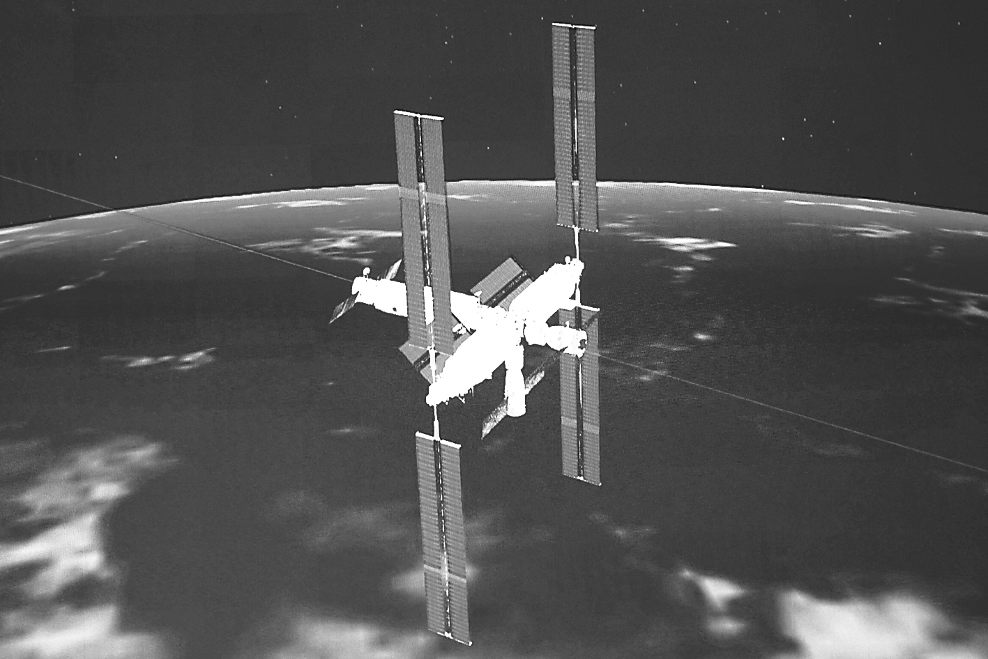 ◀11月30日在酒泉卫星发射中心拍摄的神舟十五号载人飞船与天和核心舱自主快速交会对接的模拟图像。