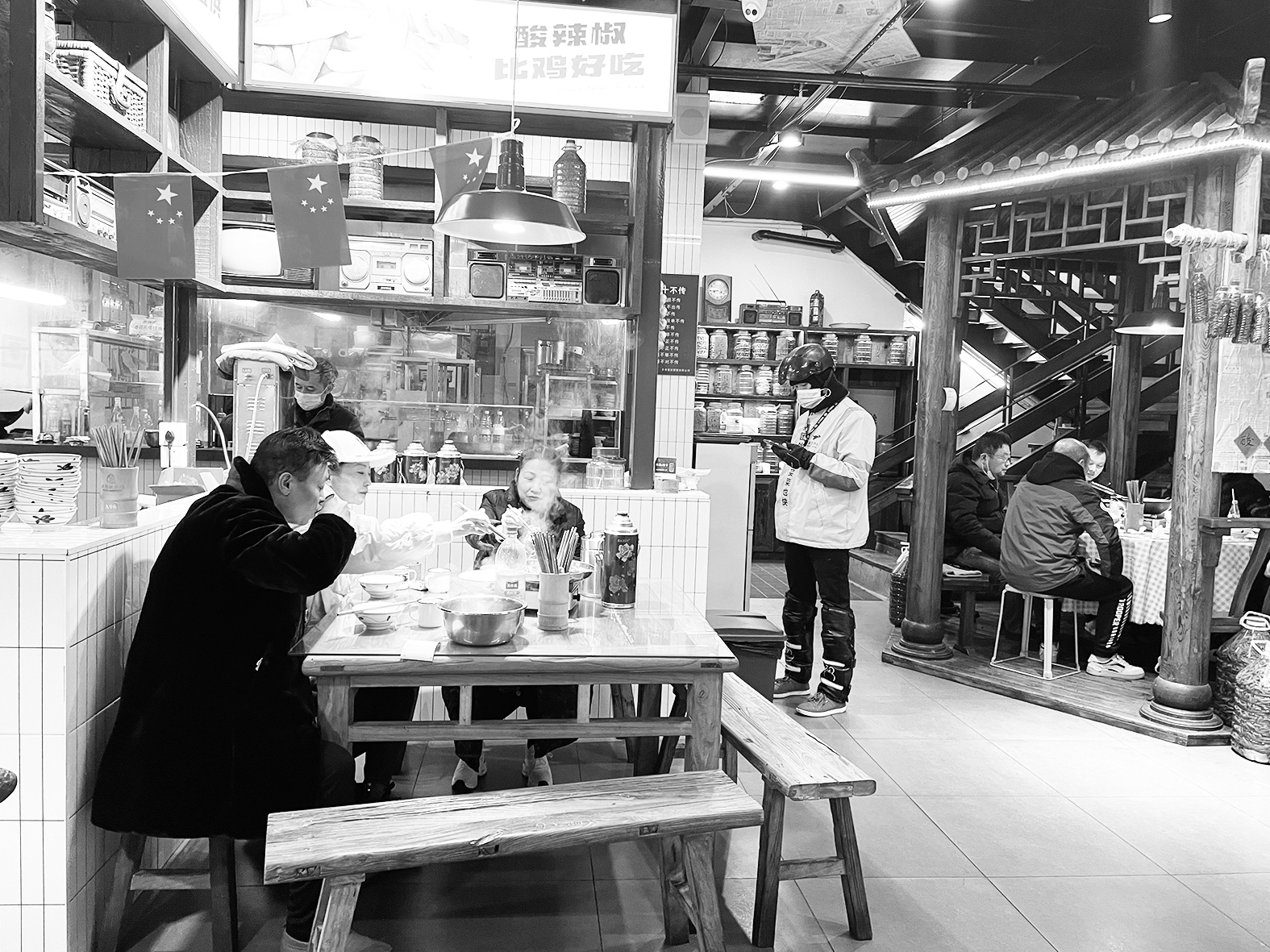当晚6时许,随着夜幕降临,华灯初上,城内大大小小的餐厅、饭店一扫此前的冷清,升腾起阵阵烟火气。