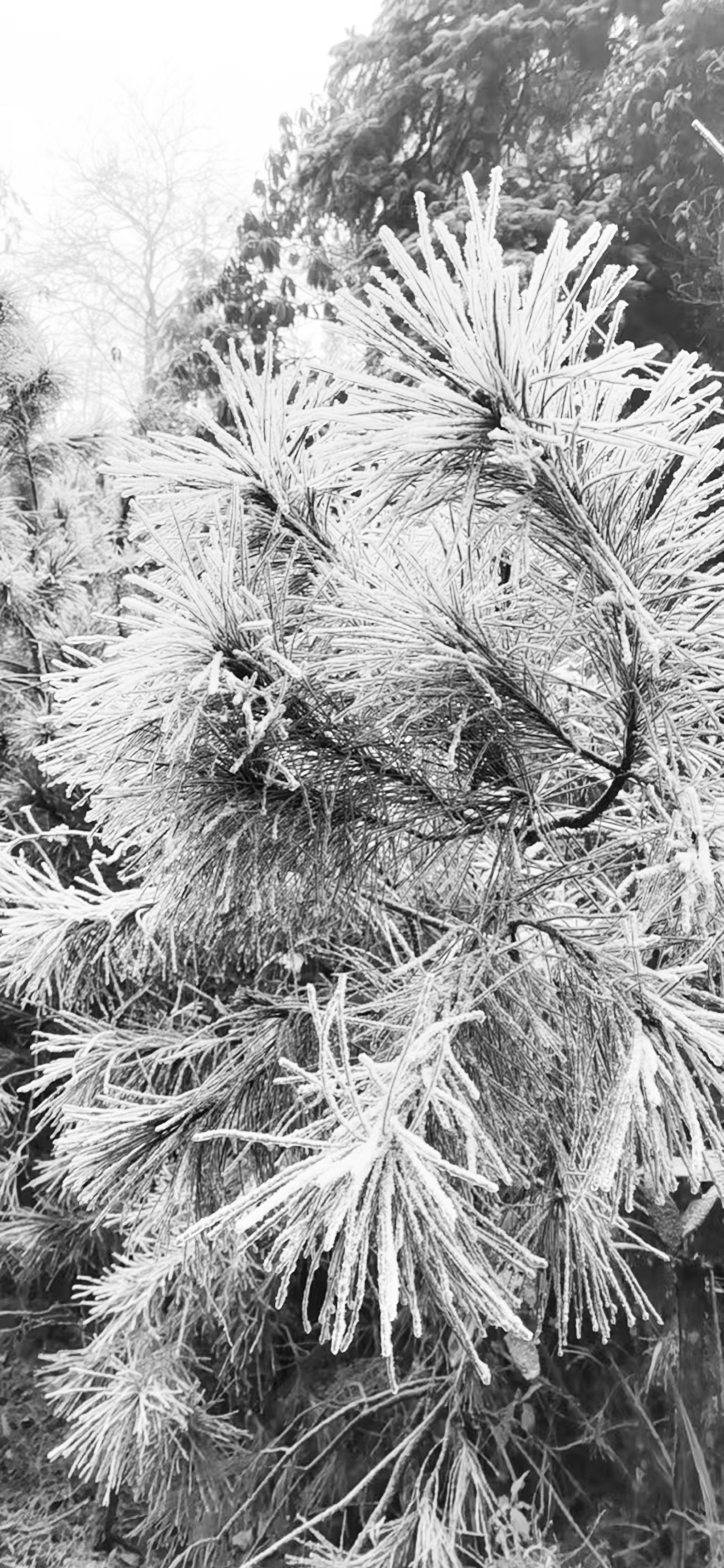 12月1日一大早,遭强冷空气袭击的炎陵县策源乡梨树洲一带,人们发现了美丽的雾凇景观,银光闪闪,晶莹多姿。