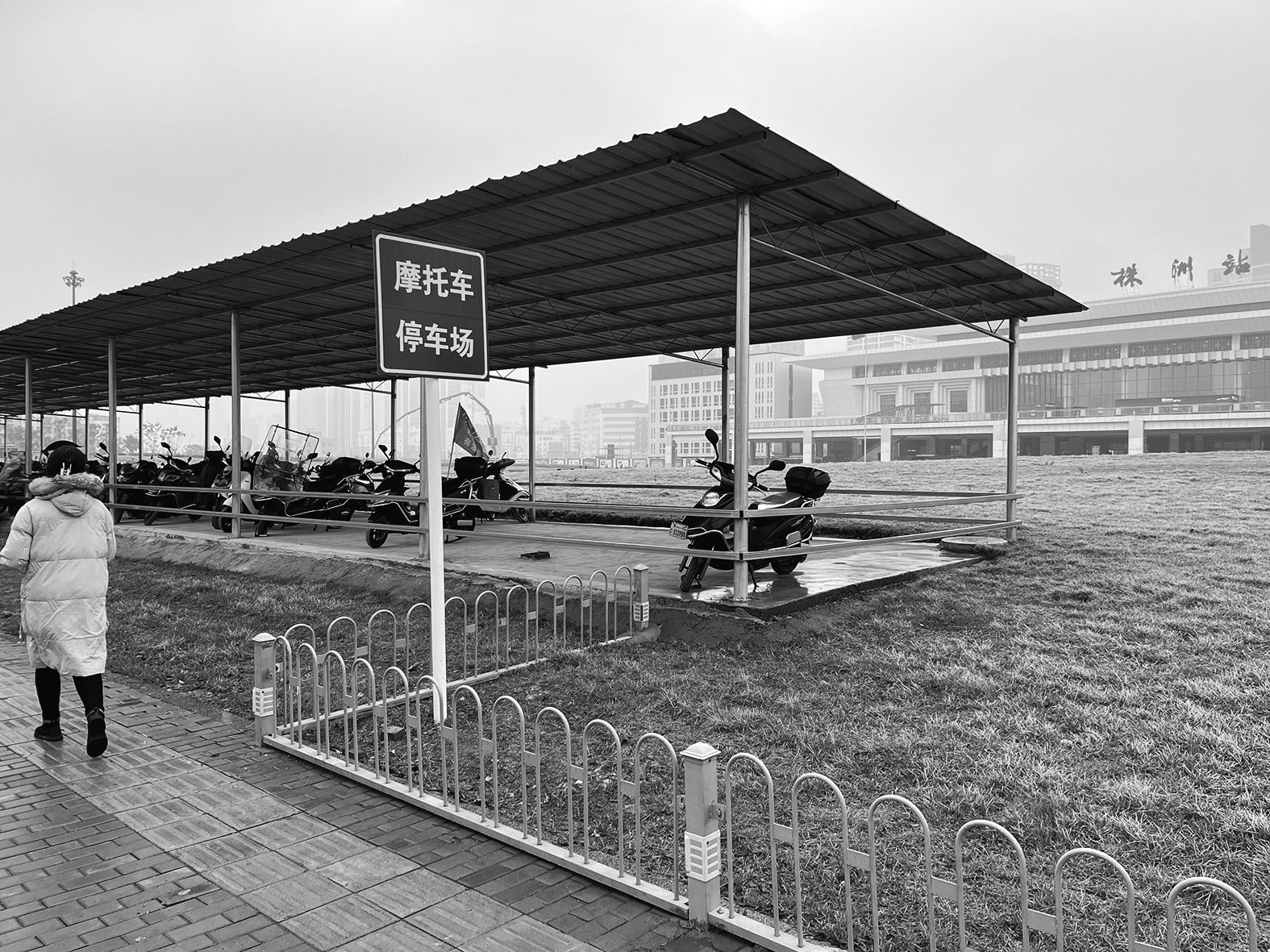 12月4日,几辆电动车在株洲火车站东广场随意停放,被管理人员锁车。记者走访发现,东广场一带停放电动车、摩托车,有专门的停车场地,停车位并不难找。在东广场靠铁东路位置,新建有2个数十米长的停车棚,人行道上多处施划有非机动车停车位。