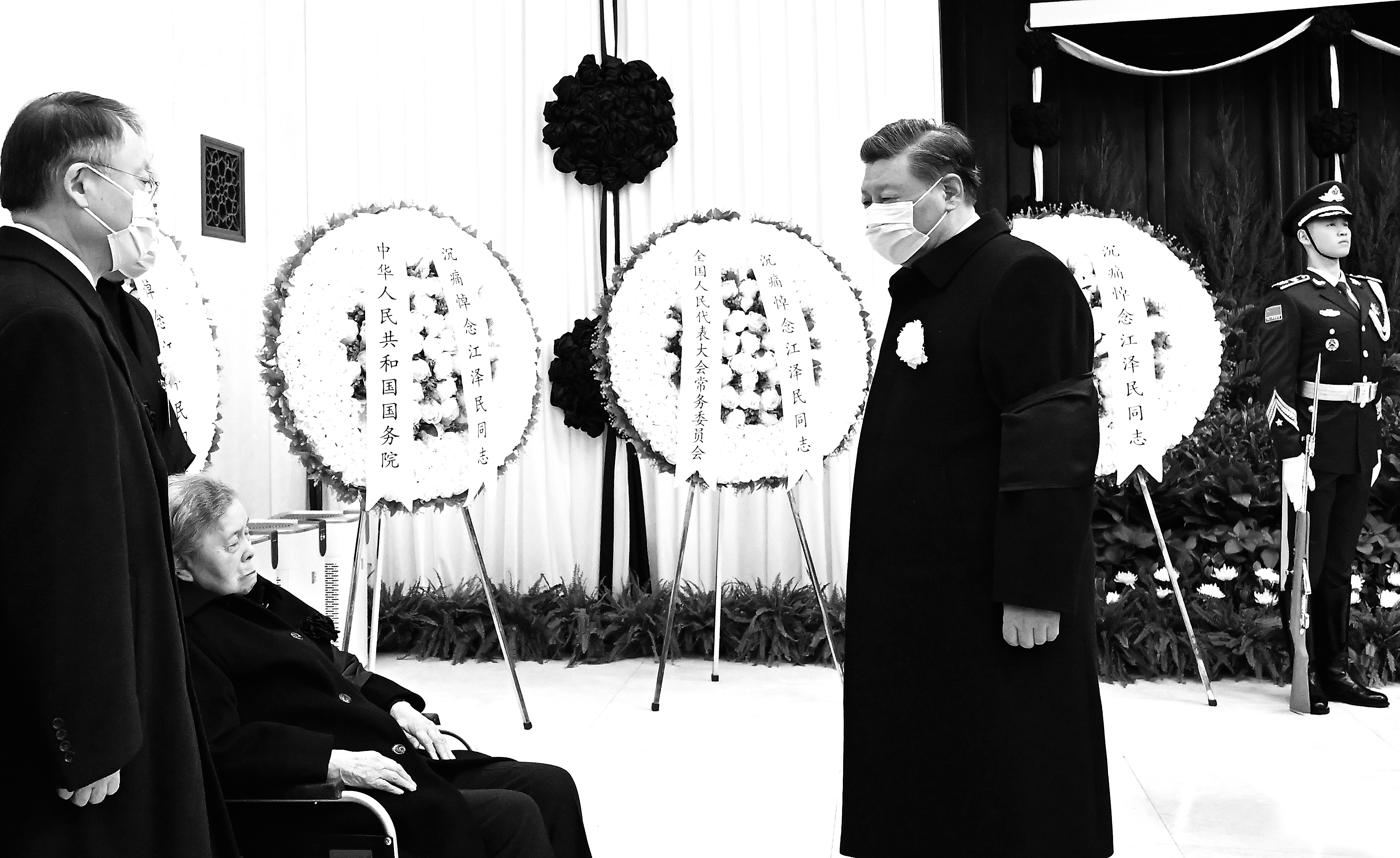 ▲12月5日,江泽民同志的遗体在北京火化。这是习近平向江泽民同志的夫人王冶坪和亲属表示深切慰问。 新华社记者 李学仁 摄