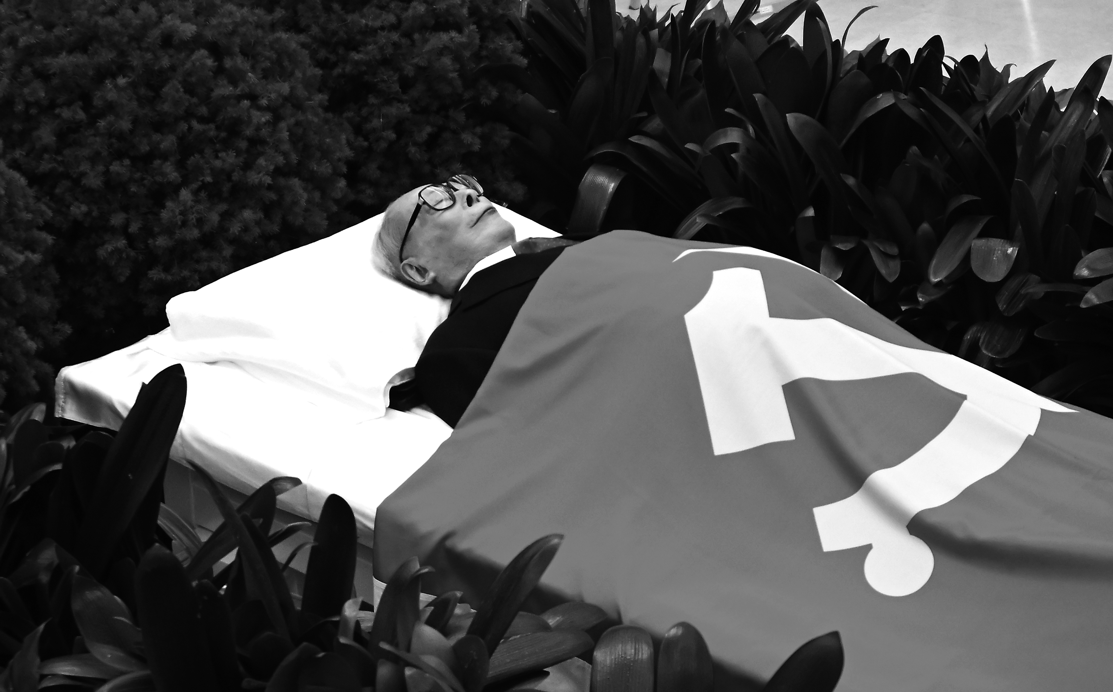 ▲12月5日,江泽民同志的遗体安卧在鲜花翠柏丛中,身上覆盖着鲜红的中国共产党党旗。 新华社记者 谢环驰 摄