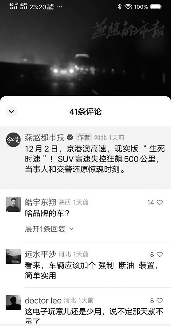 本报讯(株洲晚报融媒体记者/沈全华 通讯员/姚禹)12月6日,省高警局株洲支队发布消息,在湘粤两省高速交警联手护航下,疑似定速巡航失灵,在高速公路上失控狂奔500公里的小车已油尽脱险。