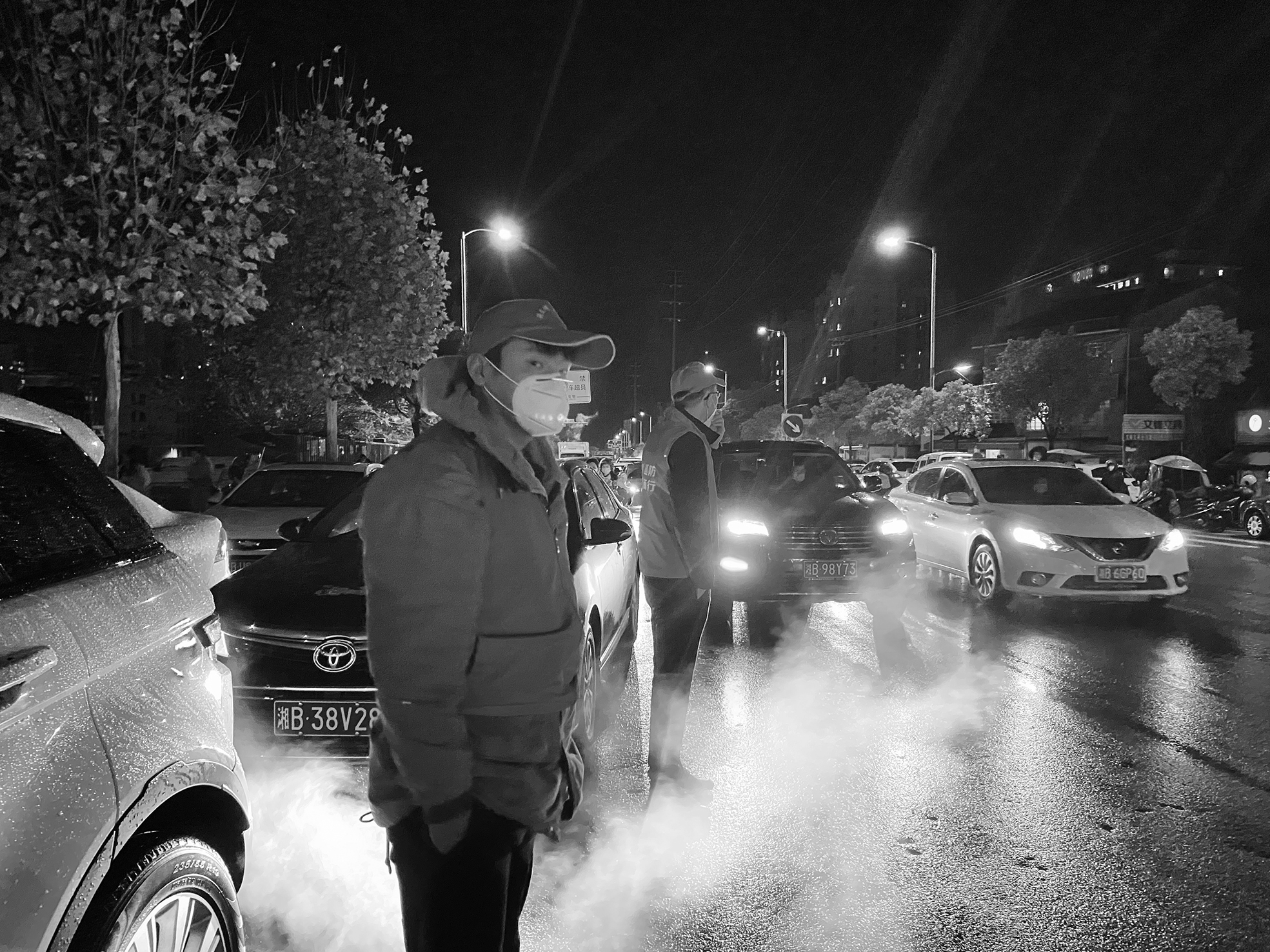 ▲“夜鹰巡防队”在寒夜中值守。 通讯员供图