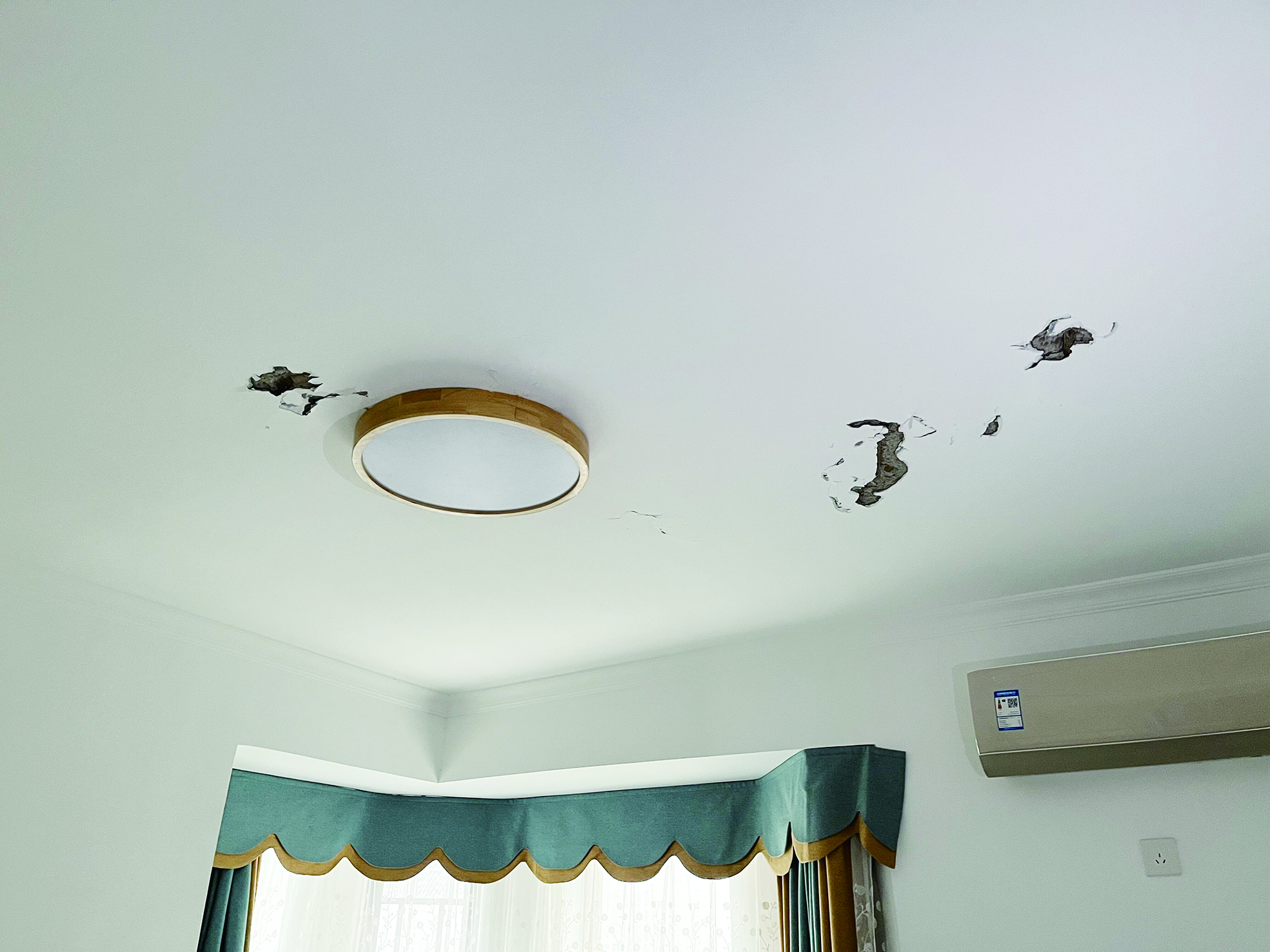 本报讯(株洲晚报融媒体记者/刘平)在楼上业主装修期间,楼下住户卧室的天花板出现水泥脱落现象……11月23日,家住天元区昆仑首府小区的居民殷女士曾多方求助,希望明确责任方,但装修公司及施工单位均认为与自己无关。(详见本报11月24日A06版报道)