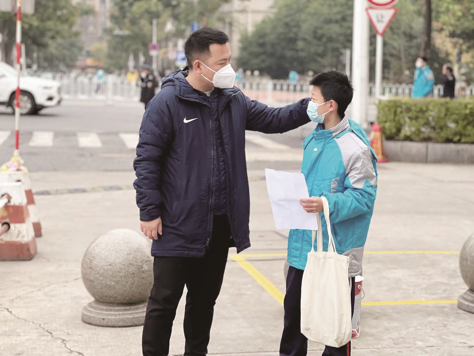 “多日不见,甚是想念啊!”C2105班班主任龙湘平跟孩子们击掌。“小伙子,看来居家也坚持锻炼,长高了啊!”该校副校长吴浪摸着学生的头,笑着说。