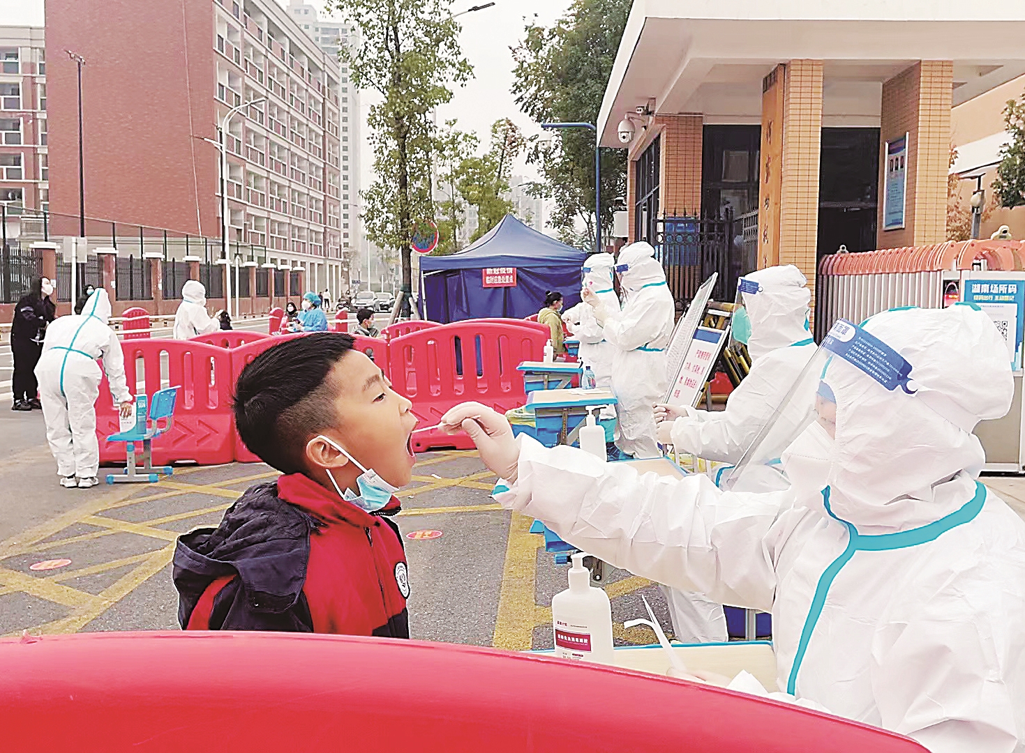 12月12日,芦淞区各小学、幼儿园全面恢复线下教学。昨日上午,各小学开展核酸采样工作,为学生复课做最后的准备。