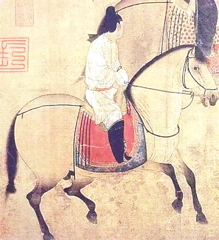 ▶唐代画家张萱的《虢国夫人游春图》局部。从图中可以看到唐代马靴的式样。 (网络供图)