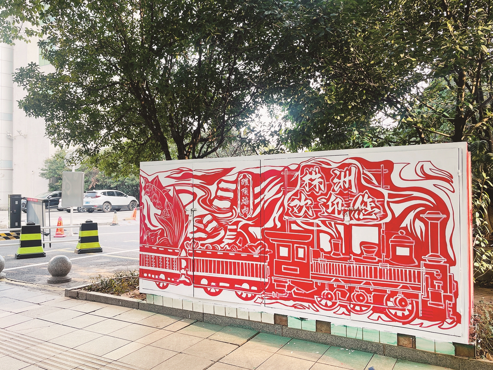 12月12日,天元区天台路、黄河南路等路段的集电箱、通信箱换了“新装”,比如中国剪纸风格的“株洲欢迎你”、Q版造型的炎帝以及行驶中的“智轨”列车等,一幅幅构思巧妙、主题鲜明的彩绘,吸引着市民驻足观看。