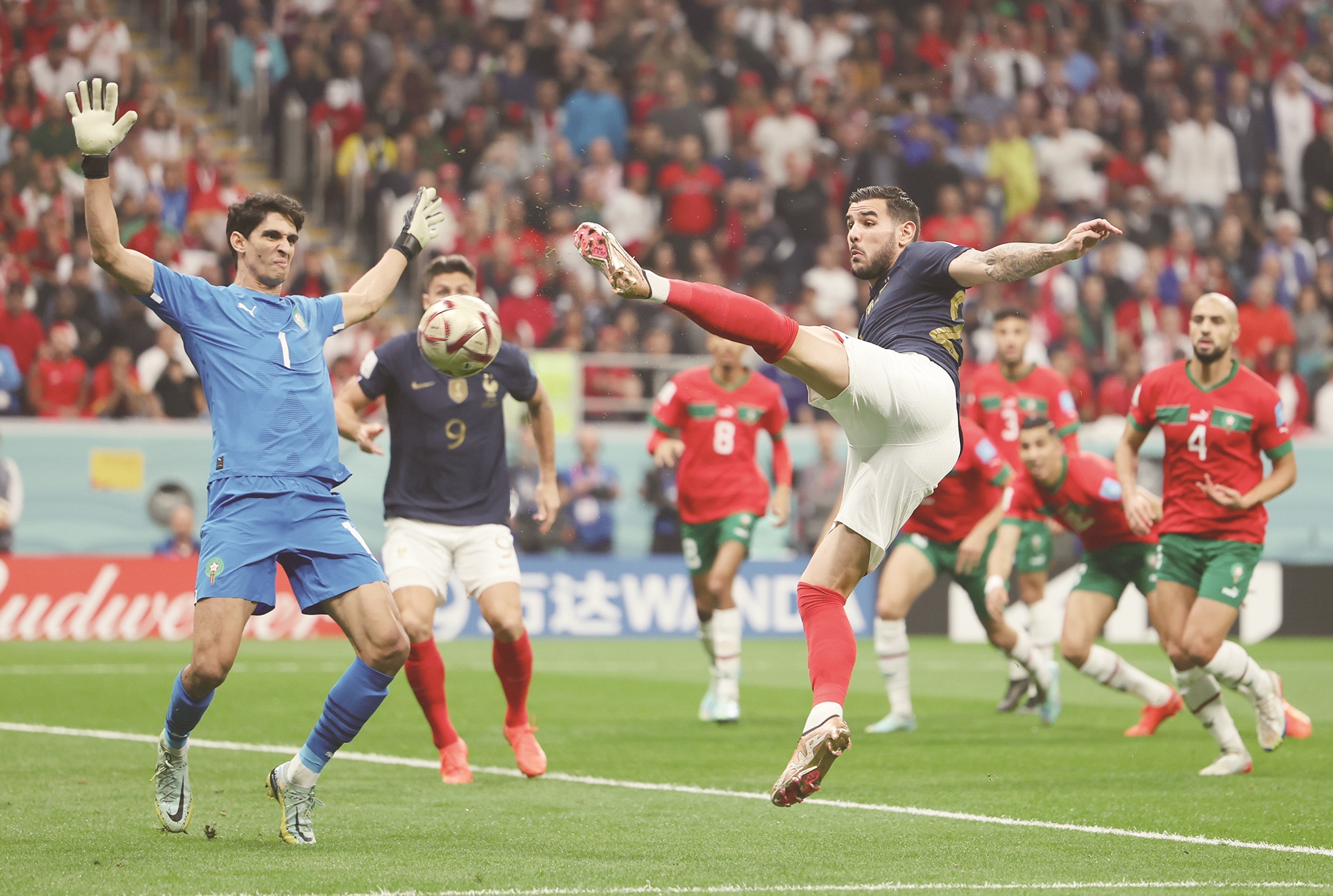 特奥在开场不久“闪电战”似的凌空劲射,以及科洛·穆阿尼的近距离推射,帮助一度被对手压制的“高卢雄鸡”惊险过关,自2018年后再度闯入世界杯决赛。