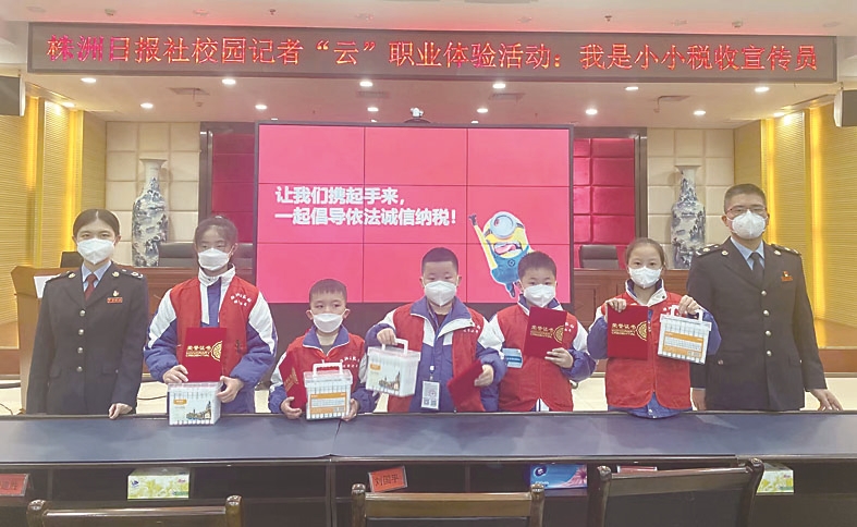 本报讯(株洲晚报融媒体记者/刘文)12月12日,芦淞区税务局迎来了一批特殊的“小小税务宣传员”,他们是株洲日报社校园记者。“小小税务体验师”活动采取“云”体验形式,利用直播的方式让全市所有校园记者了解税法知识。