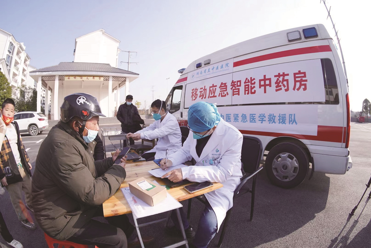 12月21日,省直中医院移动应急智能中药房开进云田镇云田社区,中医药专家现场为居民把脉问诊,提供“一人一方”的中医药服务。