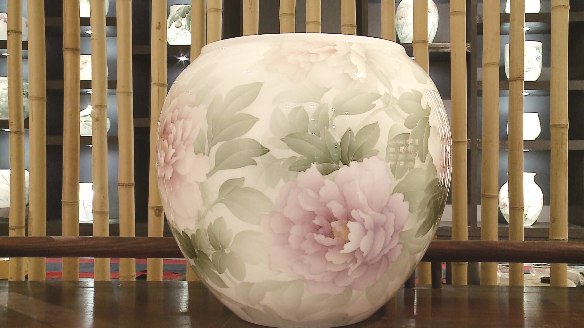 《洛阳春晓》是醴陵陈扬龙窑艺术总监、醴陵釉下五彩瓷“薄施淡染”工艺主要研究者和直接传承人申彬的作品。这是一个高34厘米、腹径37厘米的瓷瓶,直口、溜肩、鼓腹,饱满圆实,为当代极简主义造型。瓶身描绘的牡丹有的迎风初绽,有的热烈盛开,充满个性。
