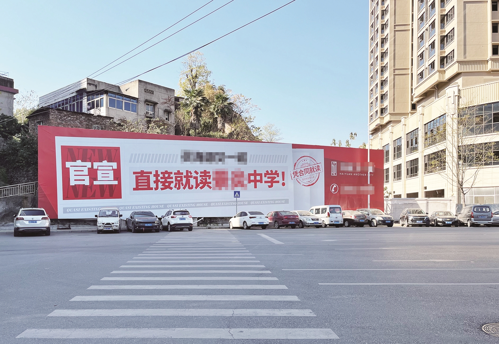 本报讯(株洲晚报融媒体记者/刘平)“官宣,买某楼盘直接就读某中学!凭合同就读……”近日,不少途经荷塘区大坪路的市民被路边的巨幅广告吸引。