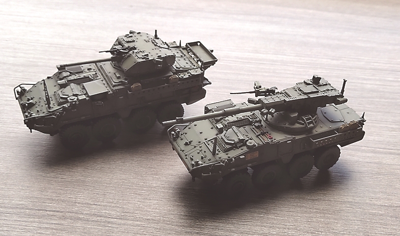 ◀小王拼装的美军“斯特瑞克”装甲车模型