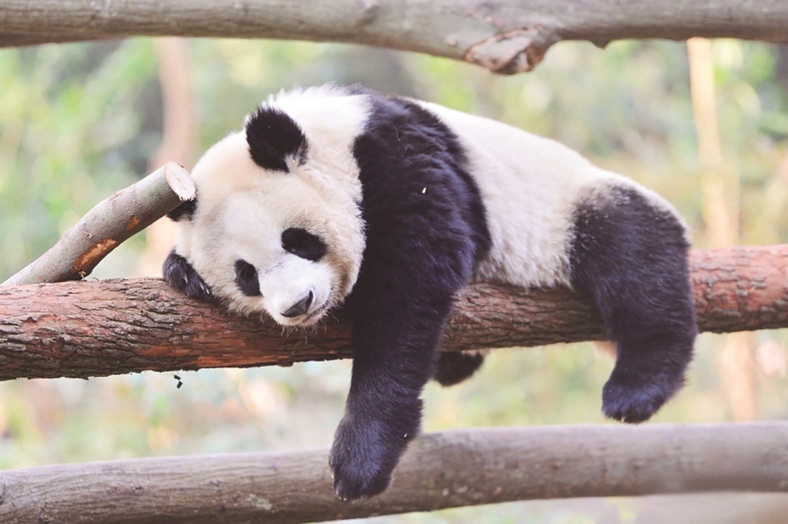 大熊猫惬意过冬