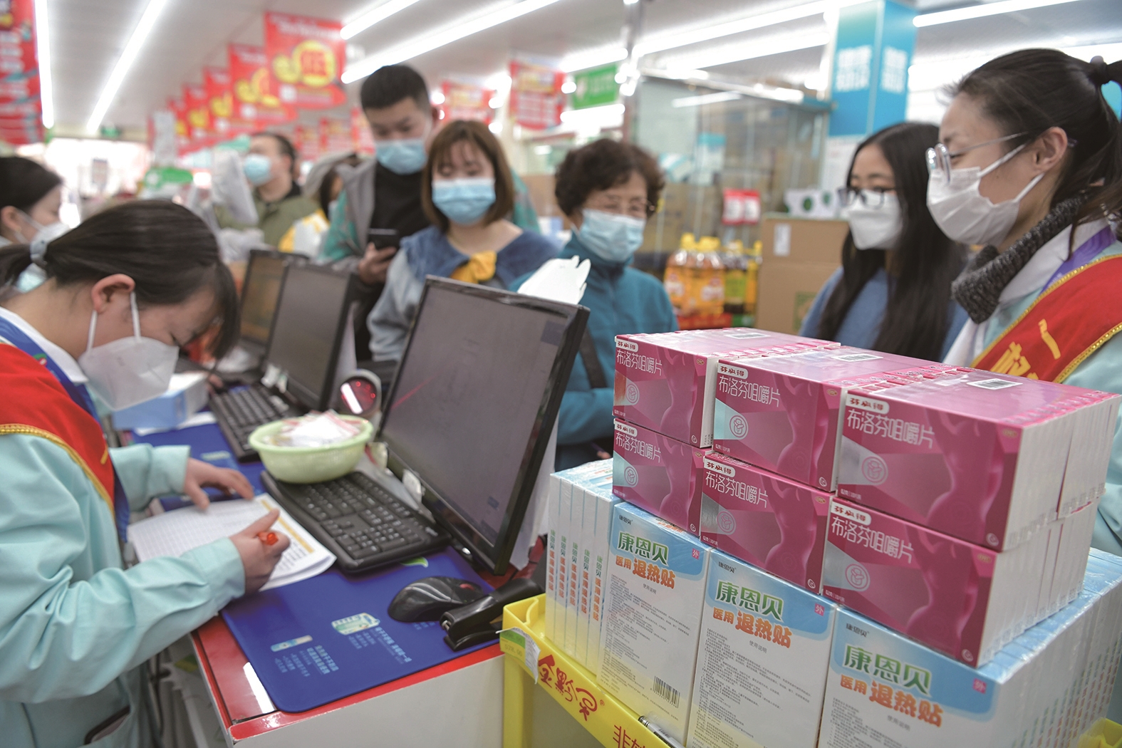 12月24日,市民在贵阳市云岩区一家药店排队领取药品。