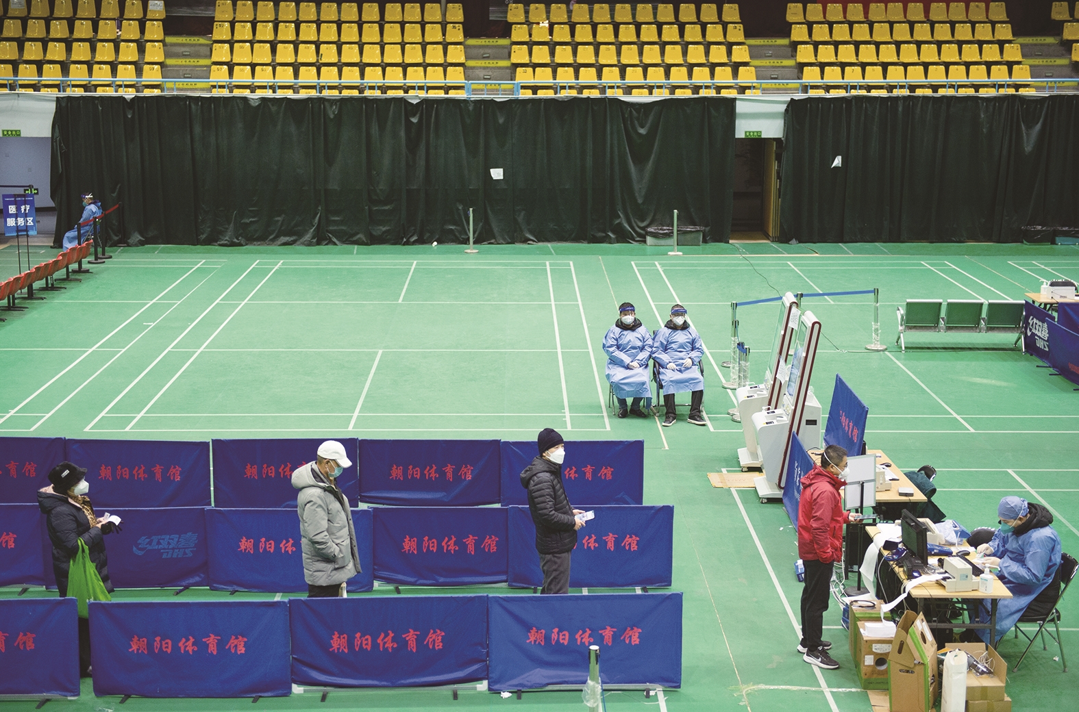 近日,为方便发热患者就医,保障群众就医需求,北京市部分医院在体育馆里开设简易发热门诊,为市民提供诊疗、开药等服务。 (据新华社)