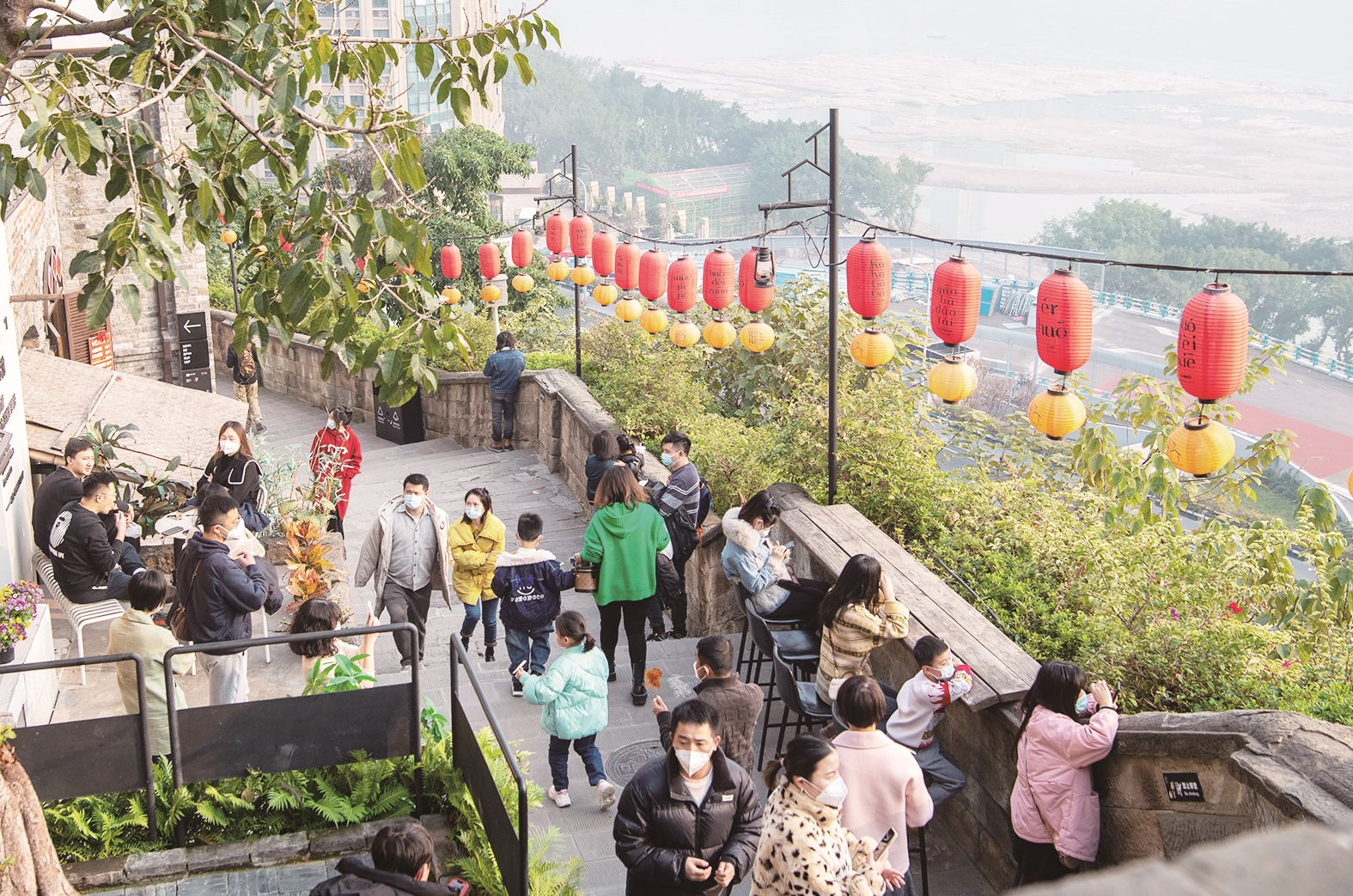 12月24日,市民游客在位于重庆解放碑商圈的著名景点山城巷游览。