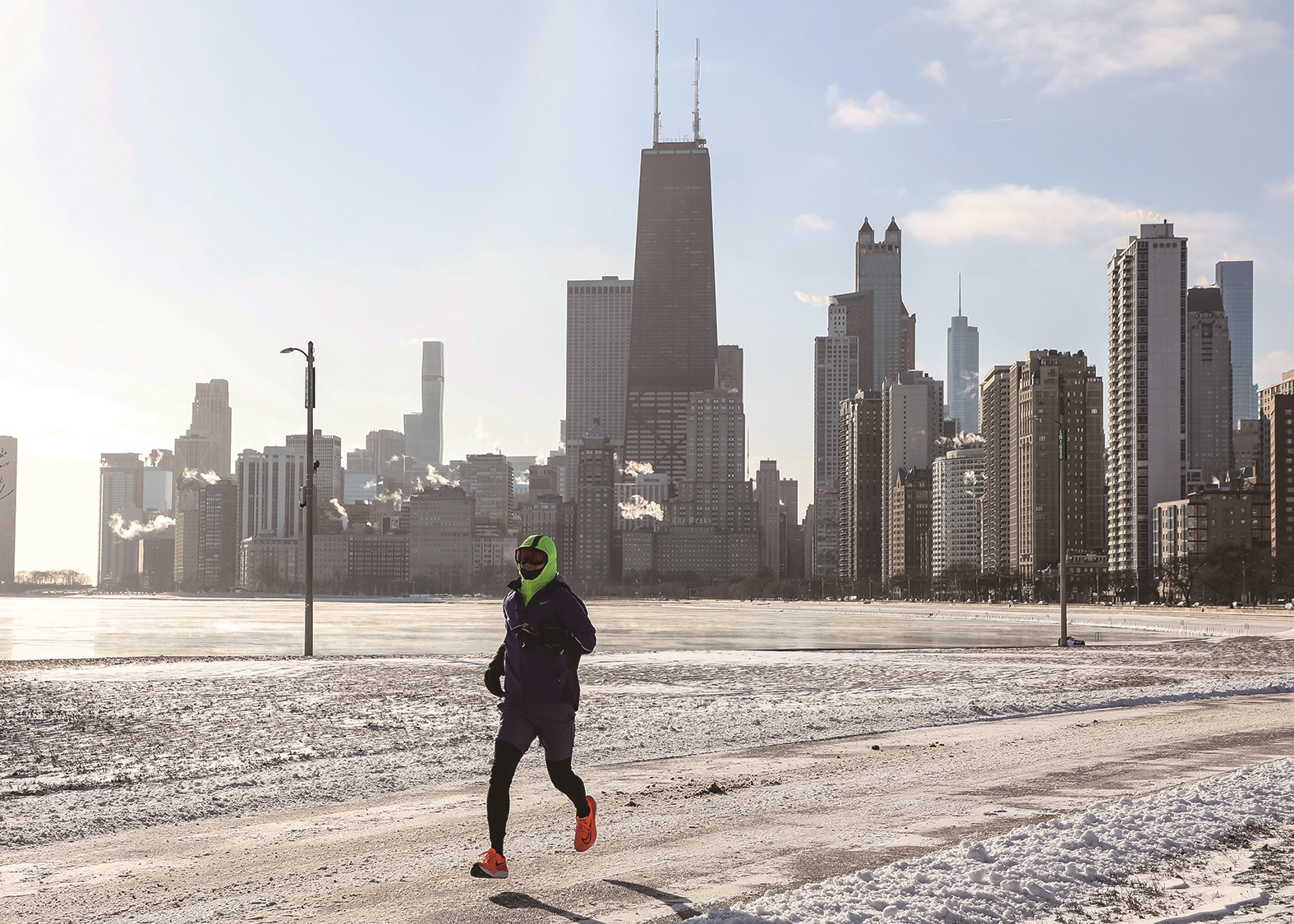 12月24日,一名男子冒着严寒在美国芝加哥密歇根湖畔跑步。