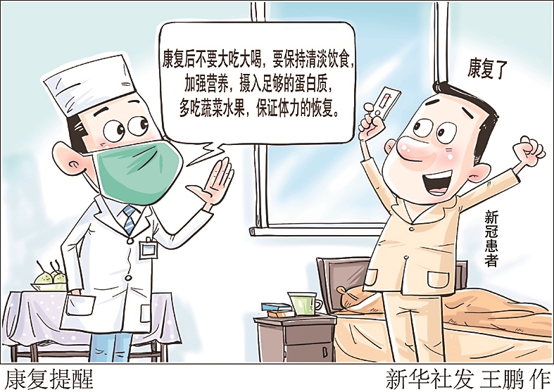 刘清泉提醒,康复后不要大吃大喝,要保持清淡饮食,加强营养,摄入足够的蛋白质,多吃蔬菜水果,保证体力的恢复。同时,生活、工作节奏要适当放缓一点,不要熬夜。