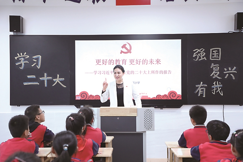 一个多月来,广大党员教师鼓励孩子们好好学习,报效祖国,激发了孩子们的爱国热情。彭小英表示,学校坚持以党的二十大精神统一思想和行动,在推进文化自强自信方面,踔厉奋发,勇毅前行,并将通过贯彻二十大的精神,将学校的各项事业推上新的高峰。