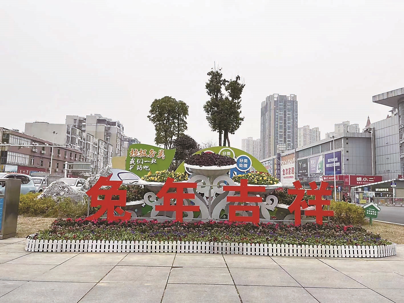 据悉,此次花卉造景多用中国结、兔年生肖装饰等中国元素,搭配一串红、三色堇、千日红、鸡冠花等花卉作为衬托。同时,响石广场周边道路的灯杆上也新增了200多个喜迎的红灯笼,彰显新春新气象。