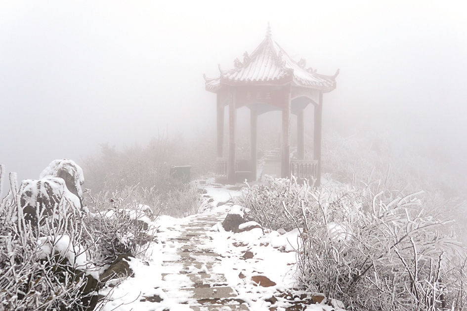 受冷空气影响,28日傍晚,渌口区蓬源仙迎来今冬第一场雪。次日清晨,人们一觉醒来,发现蓬源仙周围的树木、房屋都穿上了雪白的“新衣”,恰似一幅铺展在天地间的冰雪画卷。