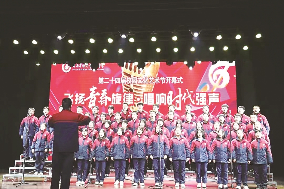 本报讯(株洲晚报融媒体记者/孙晓静 通讯员/王玉彤)近日,市二中举行第二十四届校园文化艺术节开幕式暨高一年级合唱比赛,20个班级以班级为单位登台献唱,飞扬青春旋律,唱响时代强音。