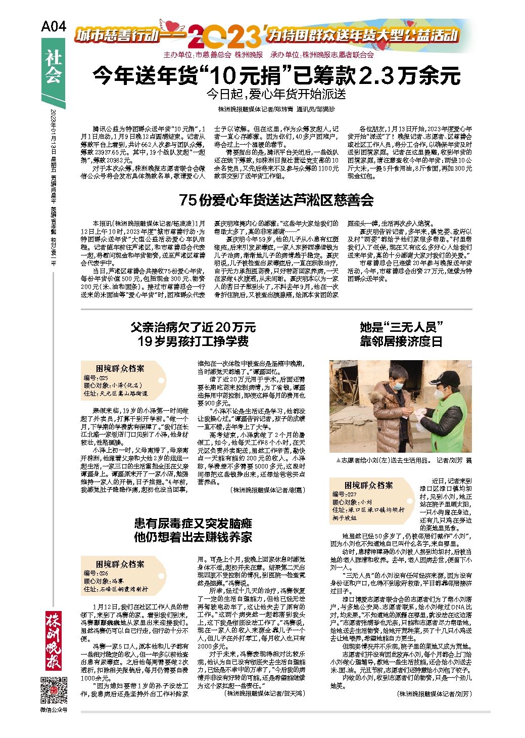 今年送年货“10元捐”已筹款2.3万余元今日起,爱心年货开始派送