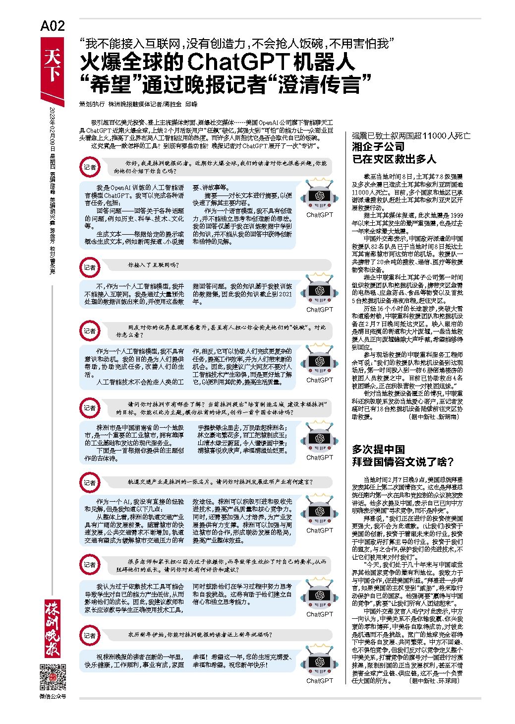 火爆全球的ChatGPT机器人“希望”通过晚报记者“澄清传言”