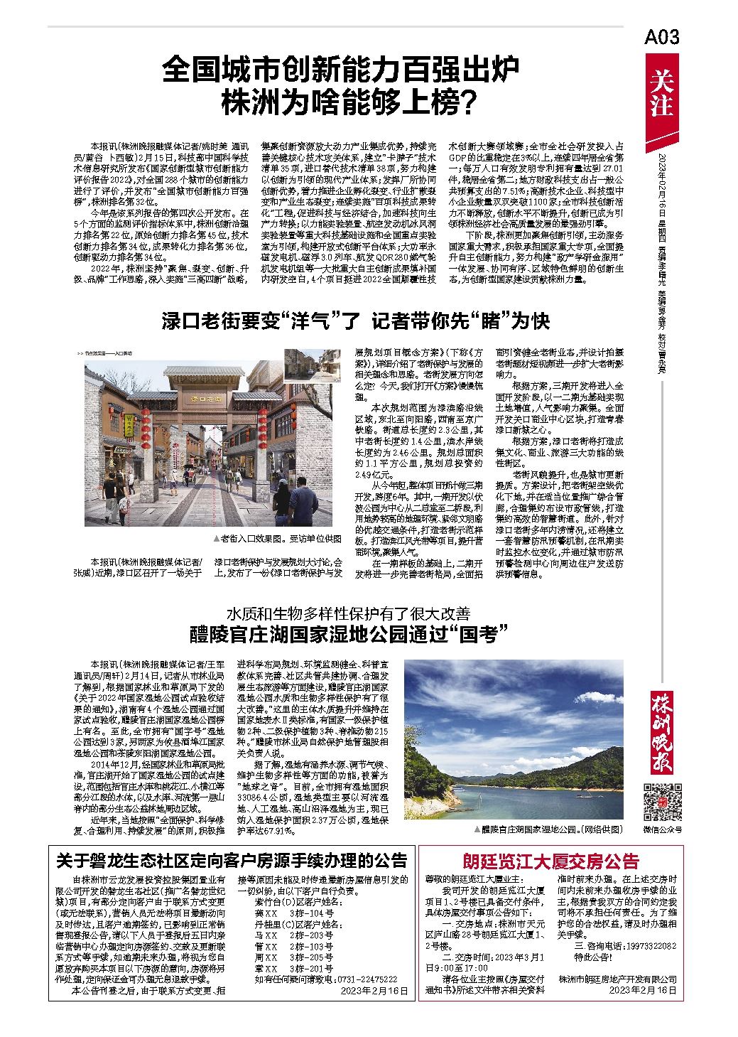 2023年02月16日《株洲晚报》