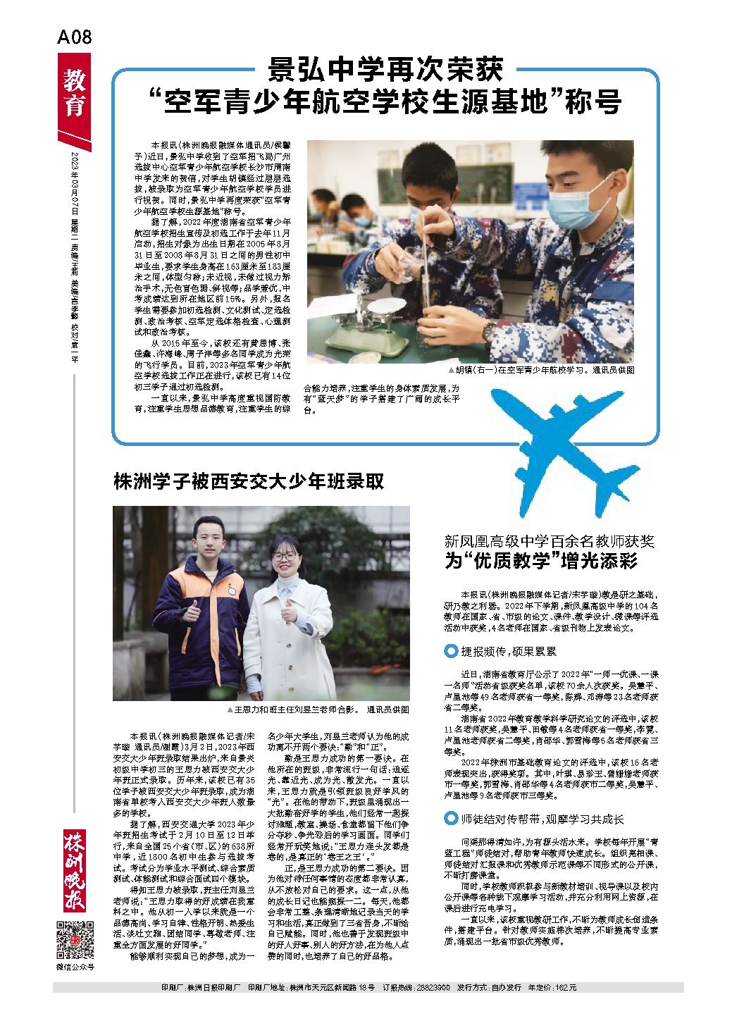 景弘中学再次荣获“空军青少年航空学校生源基地”称号
